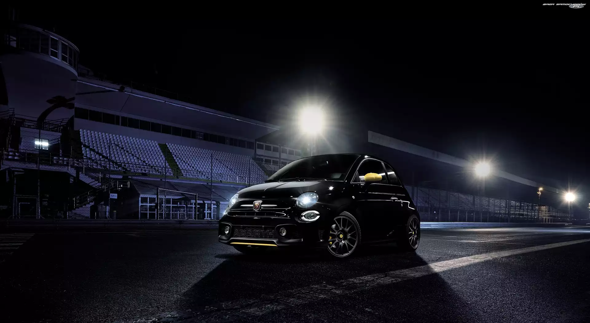 Samochód: Światła, Droga, Abarth 595 Trofeo Edition, Czarny, 2017